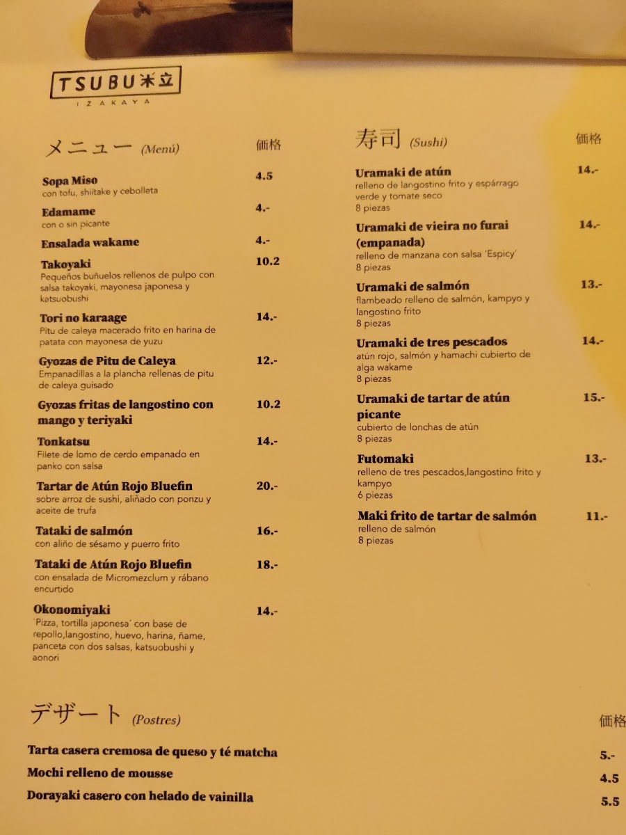 Step inside, and you'll find a cozy atmosphere that perfectly complements the thoughtful menu. While it may be small, what TSUBU IZAKAYA JAPONES lacks in quantity, it more than makes up for in quality. The carefully curated dishes are a testament to the skill and passion of the kitchen team, featuring standout offerings that are sure to tantalize your taste buds.